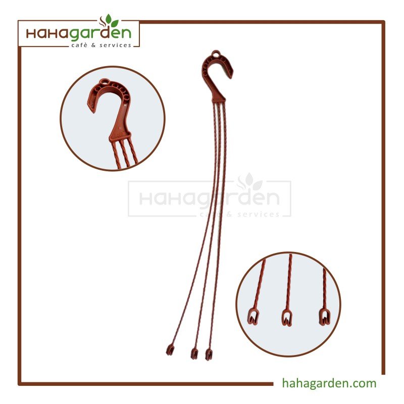 ·A plastic pot hanger that can be attached to BABA pots with rims or holes in their rims. It has 3 prongs with twist design that improves durability and strength and ends with a clip for attaching onto the pots.
