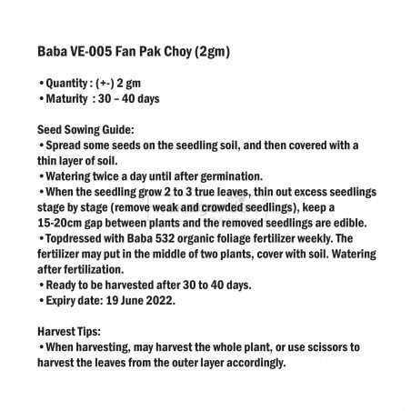 Baba VE-005 Fan Pak Choy (2gm) – 1pc