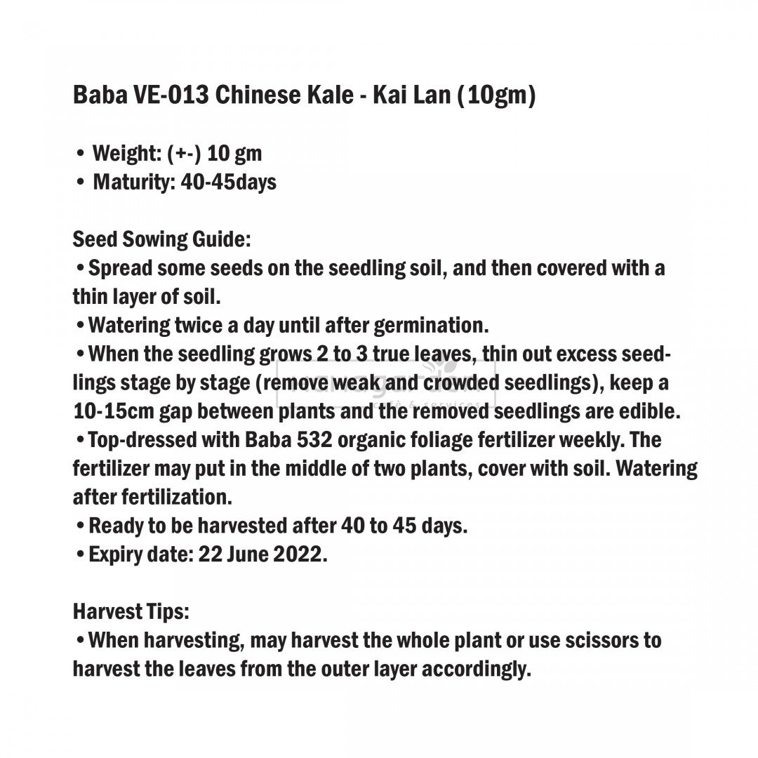 Baba VE-013 Chinese Kale - Kai Lan (10gm) – 1pc