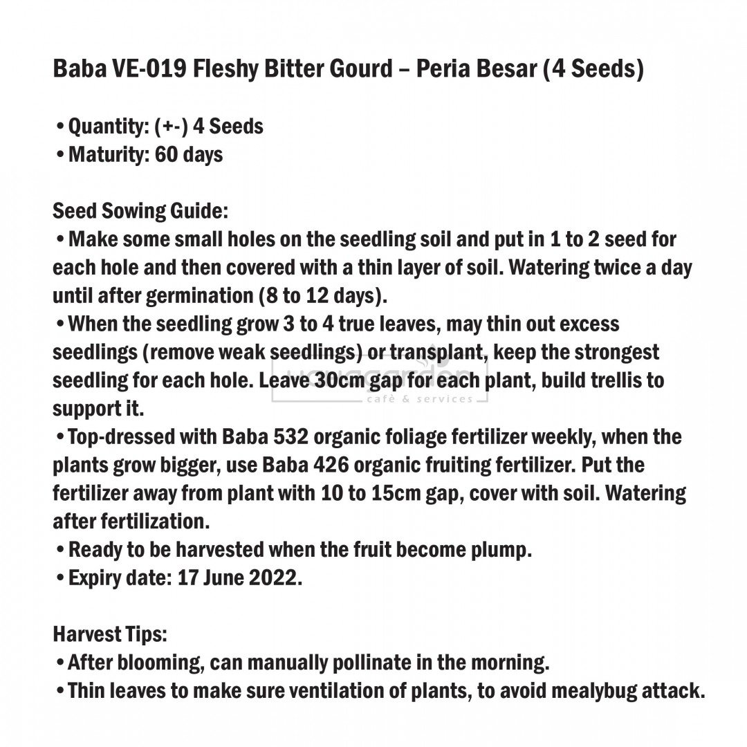 Baba VE-019 Fleshy Bitter Gourd – Peria Besar (4 Seeds) – 1pc