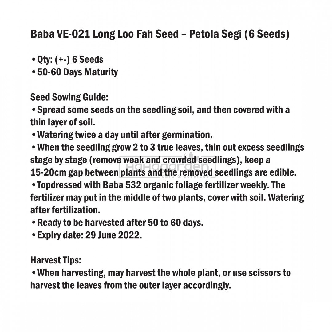 Baba VE-021 Long Loo Fah Seed – Petola Segi (6 Seeds) – 1pc